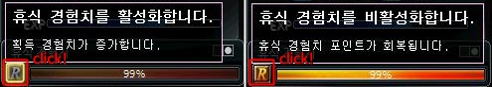 (몬스터를 잡을 때 활성화하여 효율적으로 휴식 경험치를 사용할 수 있습니다.)