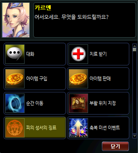 (아래 이미지는 슬레이어의 예시 이미지입니다. 종족 별 도우미 NPC와 상호 작용하여 퀘스트를 수락할 수 있습니다.)