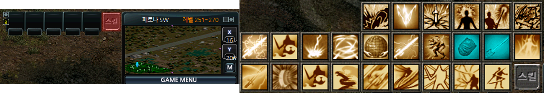 1. 우측 하단 미니맵 옆 '스킬' 버튼을 클릭하거나 단축키: S를 눌러 스킬 창을 활성화할 수 있습니다.