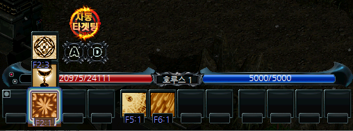자동 타겟팅이 설정이 되었을 경우 지정된 슬롯의 버튼, 마우스 우클릭을 통해 스킬이 사용됩니다.