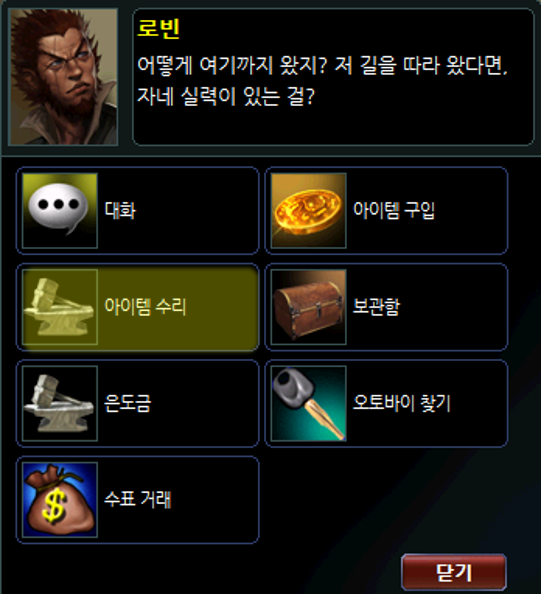 1. 아이템 수리 NPC와 상호작용 후 아이템 수리 버튼 클릭합니다.