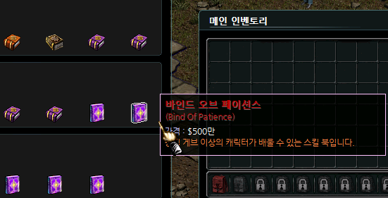 2. 스킬북 아이콘에 마우스를 올려 스킬북의 이름과 가격을 확인합니다.