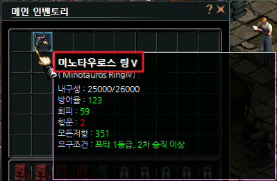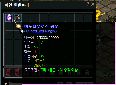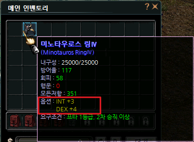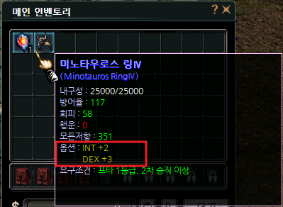 | 공격속도+4 | 1.40% | DEX+2 | 1.75% | 행운+3 | 3.25% | 방어율+5 | 0.70% |