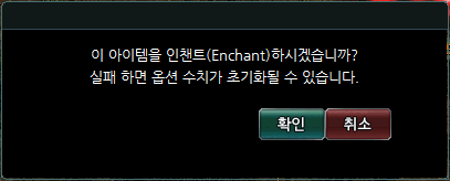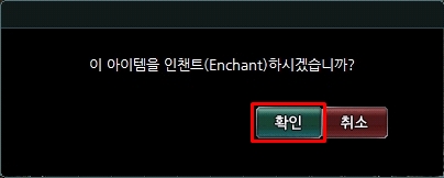 3. 활성화 된 인챈트창 하단에 있는 확인 버튼을 클릭합니다.