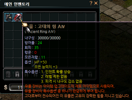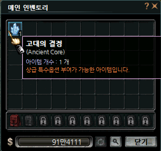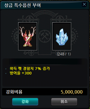 3. 고대의 유물 아이템 1개와 500만 게임머니를 사용하여 강화 시 상급 특수 옵션이 부여 됩니다.