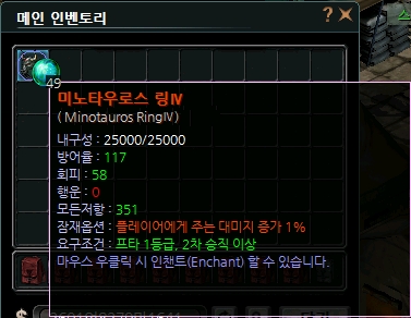 잠재 옵션 부여 후에도 2옵션 부여 및 옵션 상승 인챈트가 가능 합니다.