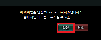 3. 활성화 된 인챈트창 하단에 있는 확인 버튼을 클릭합니다.