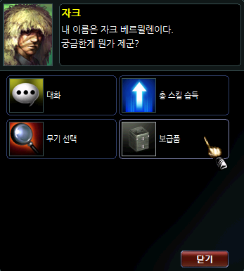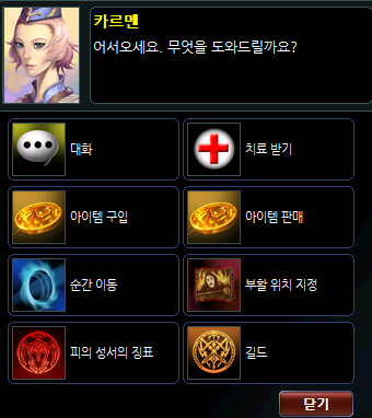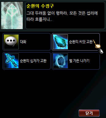 2. 각 종족 NPC 창에서 아이템 명에 맞는 항목을 클릭합니다.