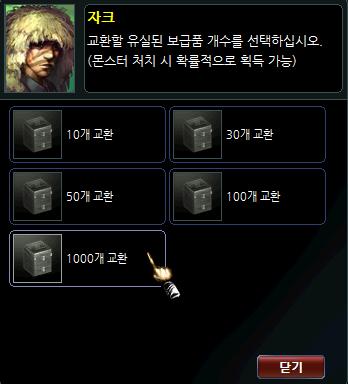 4-1. 교환 가능 아이템이 여러개인 경우, 상응하는 아이템을 클릭해 보상을 수령합니다.