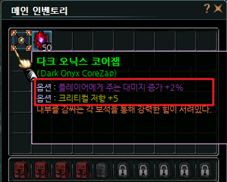 ✔️ 체크 - 코어잽 2옵션 부여 인챈트에 관한 자세한 내용은 아이템 인챈트 문서에서 확인 가능합니다.