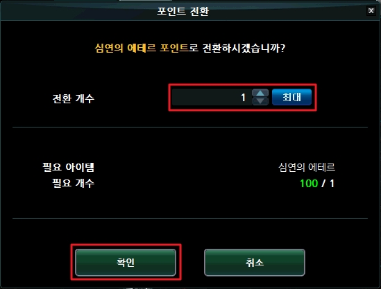 5. 에테르 특성 : 포인트 전환 (아이템 → 포인트)