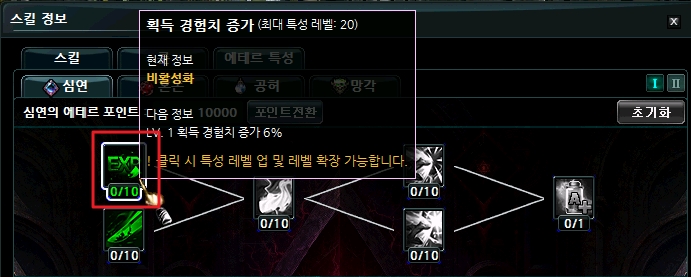 ✔️ 체크 - 최대 레벨이 1인 특성은 확장할 수 없습니다. - 특성 초기화 시 확장된 레벨은 초기화되지 않습니다.