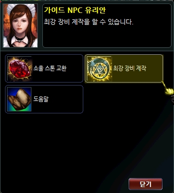 1. 제작 NPC > 최강 장비 제작 > 소울 스톤 교환 메뉴를 클릭합니다.