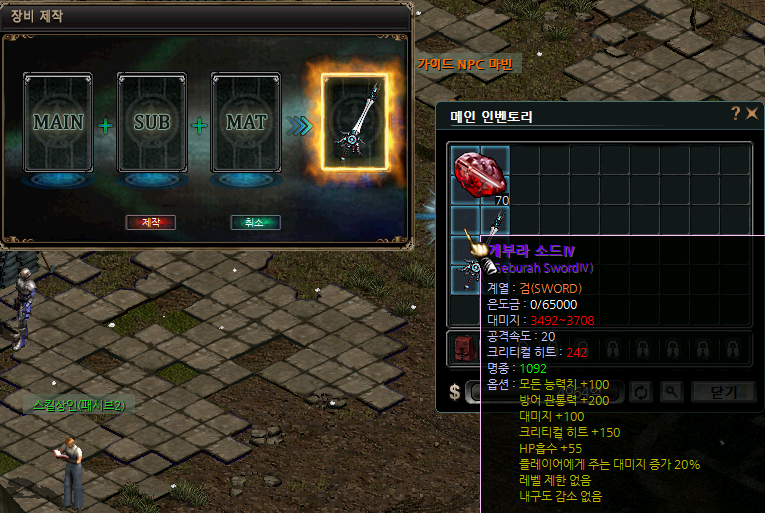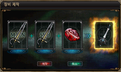 ✔️ 체크 - 제작 완료 시 제작에 사용된 메인/서브 장비, 재료 아이템은 전부 소멸됩니다. - 제작 시 기본 장비(4급)의 최강 장비로 제작됩니다. 예) 메인/서브 장비의 옵션/급수/인챈트 수치 등은 적용되지 않습니다.