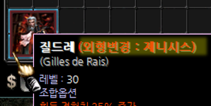 | ★8 (Epic) 질드레 | 획득하는 경험치량 +75%, 획득하는 계급 경험치량 +75%, 아이템 자동 습득 |