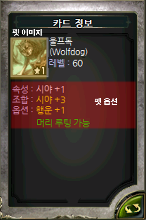 속성 옵션은 랜덤으로 부여되며, 펫 레벨에 영향을 받아 속성값이 지정됩니다.