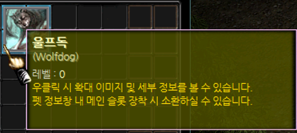 4. 펫 길들이기에 성공하면 인벤토리에 울프독 아이템이 생성됩니다.