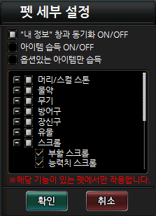 해당 기능은 자동 습득 기능이 있는 펫만 해당 기능을 사용할 수 있습니다.