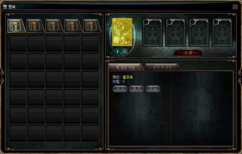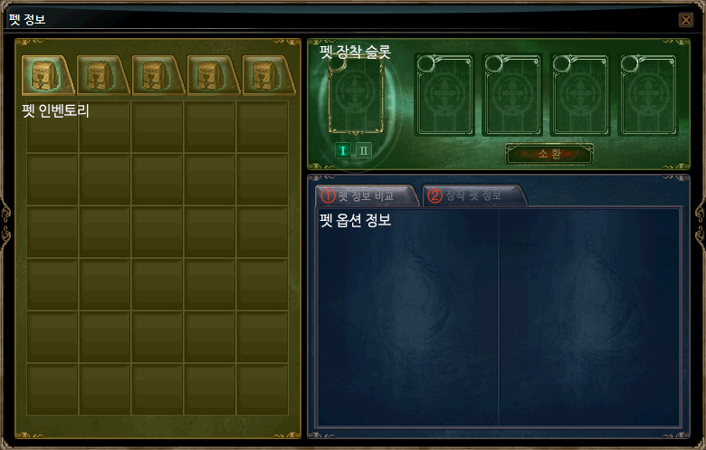 펫을 기능을 활성화하기 위해서는 펫을 소환해야 합니다.