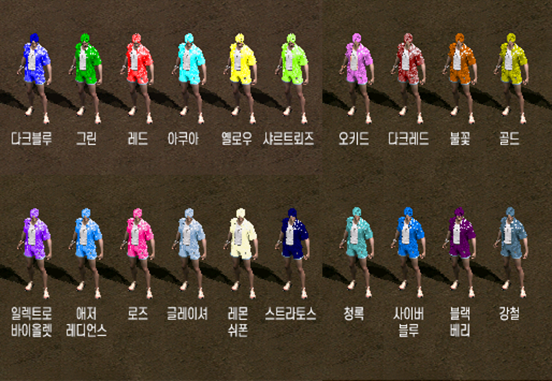 | 아우스터즈 외형 | 헤어 염색약 | 의상 염색약 |
