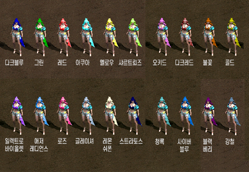 NPC 염색 기능을 통한 염색 외에, 새로운 색상이 추가된 아이템입니다.