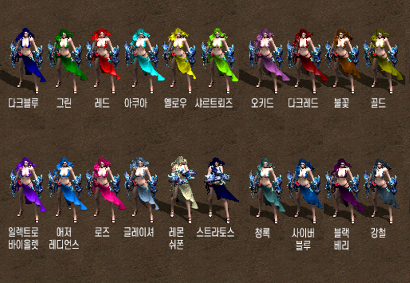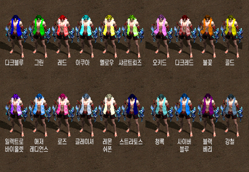 | 슬레이어 외형 | 헤어 염색약 | 의상 염색약 | ||