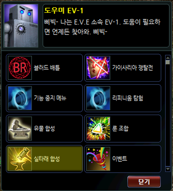 합성으로 나오는 아이템의 옵션 종류는 랜덤으로 등장합니다.