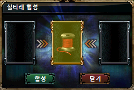 2. 인벤토리에서 실타래 아이템을 우클릭하여 재료를 등록 후 합성 버튼 클릭합니다.