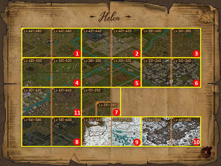 아이센 던전이 존재하는 드로베타 공단, 티포쥬성과 아담의 성지등이 존재하는 얼어붙은 호수인 티모르 호수 지역이