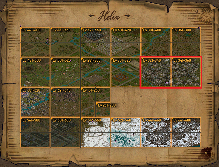 브랑코는 총 4개의 지역으로 나누어져 있으며 각 지역에 따라 적정 레벨 구간이 다릅니다.