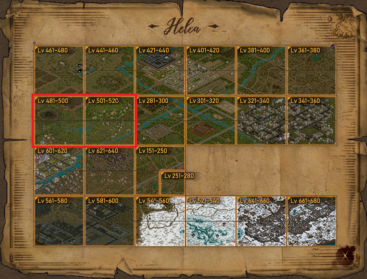 카스탈로는 총 4개의 지역으로 나누어져 있으며 각 지역에 따라 적정 레벨 구간이 다릅니다.