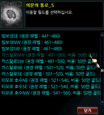 2. NPC 창에서 필드 이동 메뉴를 클릭합니다.