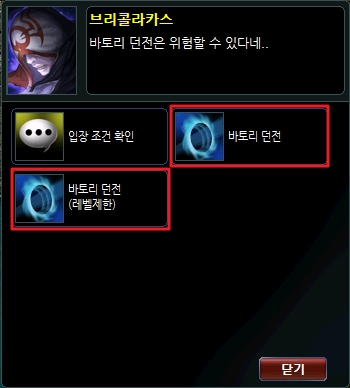 2. NPC 창에서 던전 이동 > [바토리 던전 입구] 메뉴를 클릭합니다.