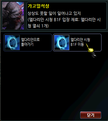 | 엘다리안 시청 B1F | 5차 승직 Lv. 581 이상 / 엘다리안 시청 열쇠 1개 |