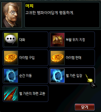 2. NPC 창에서 헬 가든 입장 > 이동하고자 하는 층의 메뉴를 클릭합니다.