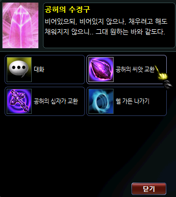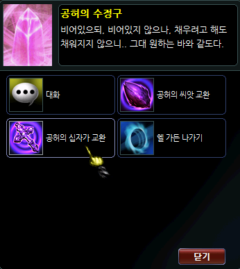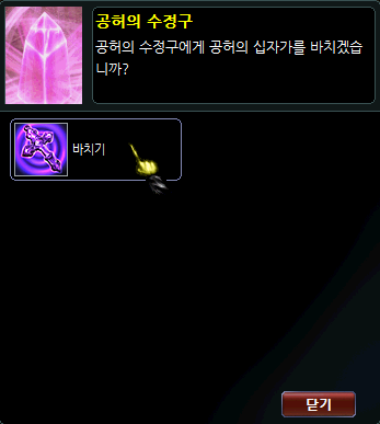 십자가 아이템을 모아 대응하는 수정구 NPC에게서 교환할 수 있습니다.