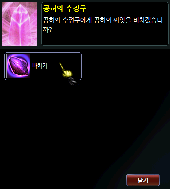| 심안의 씨앗 | 30개 | 심안의 계약서1개 | 모든 능력치 +3 모든 저항력 +5 |