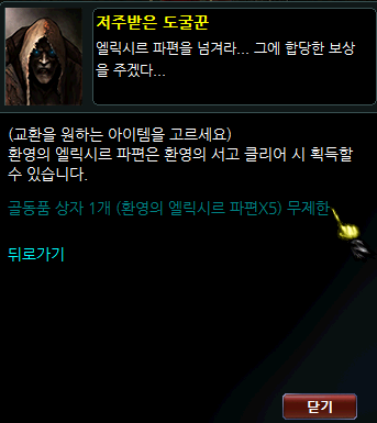 획득한 환영의 엘릭시르 파편은 입장 NPC에게 가져가면 보상으로 교환할 수 있습니다.
