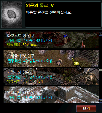 2. NPC 창에서 던전 이동 > [드라큘의 성 입구] 메뉴를 클릭합니다.
