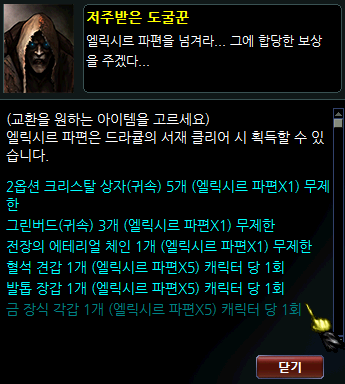 | 공통 | 2옵션 크리스탈 상자 (귀속) 5개 | 엘릭시르 파편 1개 | |