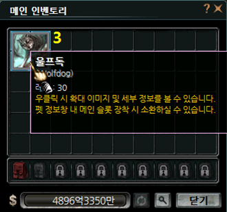 | 1 | 시작 | 울프독 | 획득 경험치 1% 증가 |