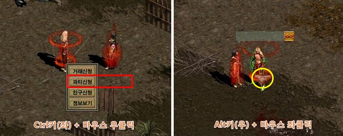 1. 키보드 왼쪽에 있는 Ctrl키를 누른 상태에서 파티를 원하는 상대방의 캐릭터를 마우스 우클릭하거나