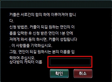 ✔️ 체크 커플 등록을 받은 캐릭터는 1분 안에 등록을 허락해야 합니다.