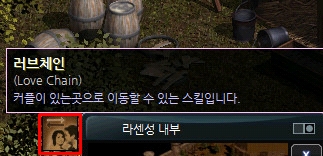 2. 장착하면 스킬란에 러브체인이란 스킬이 생성되며 해당 스킬을 퀵 슬롯창에 장착, 마우스 좌버튼을 클릭하면
