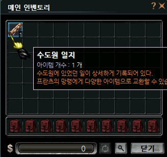 수도원 정원을 진행하여 수도원 일지 아이템 획득 |