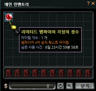 NPC 데스사이즈 라르바의 [4차승직] 메뉴에서 아이템 교환을 통해 뱀파이어 각성의 정수 5개 획득 |